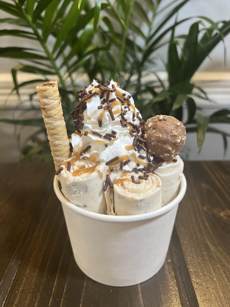 What stands out here is their rolled ice cream selection—a fun, interactive experience where you get to pick your own mix-ins, making it a draw for both kids and adults alike. The ice cream rolls come in creative varieties such as Oreo's World and Golden Ferrero, blending classic flavors with a playful twist. Pairing one of these with their creamy cappuccino or their delicate crepes offers a nice balance between sweet and savory. Their crepes, ranging from classic to rich options like Ferrero Rocher with banana, add to the café’s casual yet thoughtfully crafted menu.